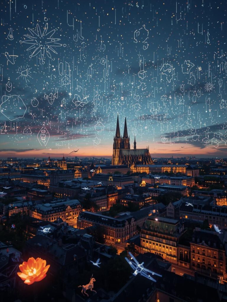 Stell Dir den Himmel über Köln vor, der Geschichten erzählt statt knallt: choreografierte Drohnenformationen, begleitende Musik- und Lichtinszenierungen, lokales Gastro- und Kulturprogramm an gut geplanten Orten. Das Event reduziert Lärm und Feinstaub, bündelt Publikum statt Wildwest-Böllerei, schafft Tourismus-Uplift und neue Einnahmequellen (Tickets, Vendoren, Sponsoring). Unsere Modellrechnung zeigt: Ein professionelles Stadt-Event kann netto ~€1.8–2.0 Mio. generieren (inkl. Tourismuseffekt) — bei gleichzeitig deutlich geringerem externen Schaden und kommunalen Folgekosten. Wir bitten die Stadt, Kulturtragend und mutig zu investieren — in eine Feierkultur, die allen nutzt. 🎆→🤖